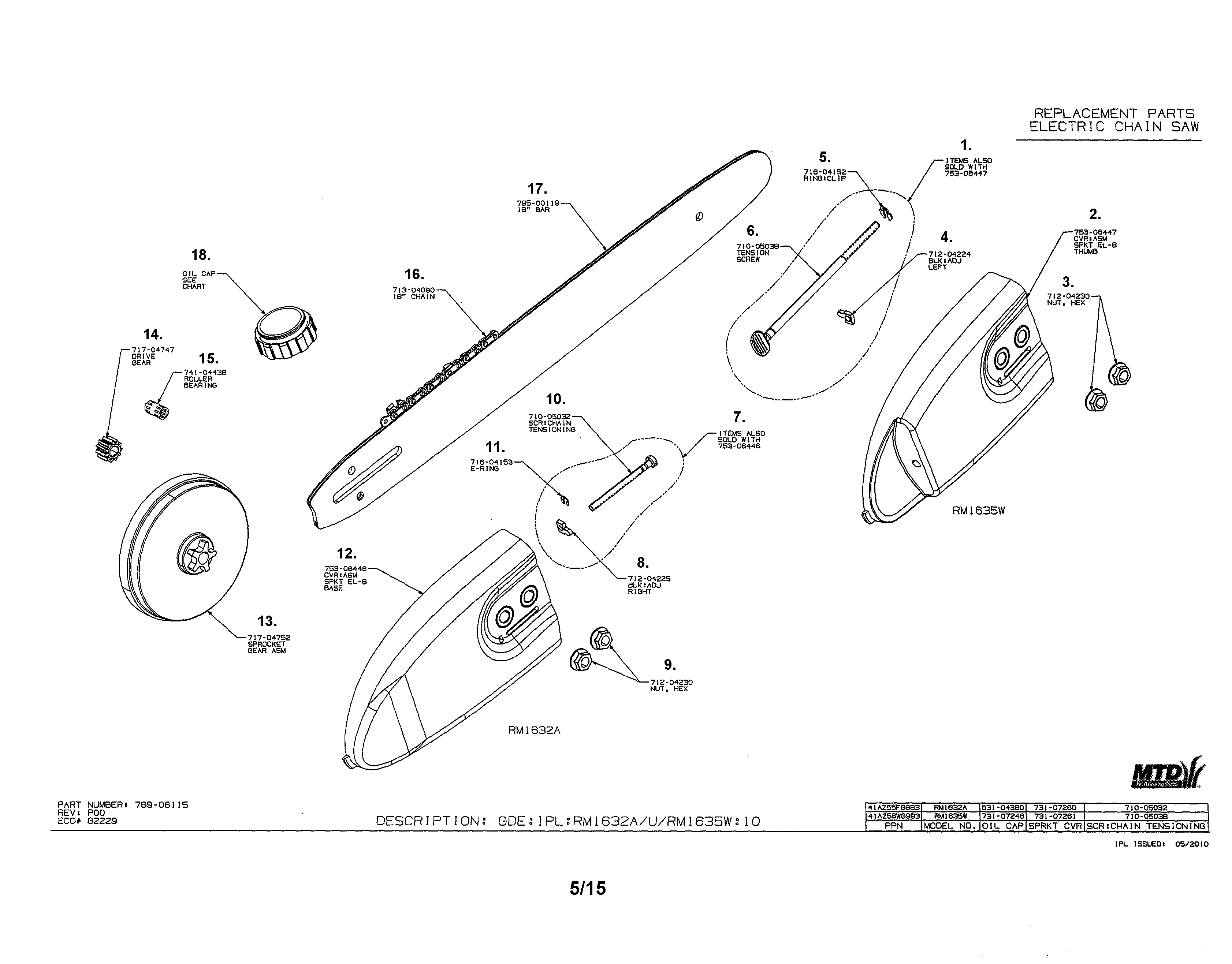 Enter the Qty of parts needed then add to cart at bottom of the list. Of 72 IMPORTANT. RM1632A RM1635W ELECTRIC CHAIN SAW OWNERS MANUAL ENGLISH 769-08191 00 0412.